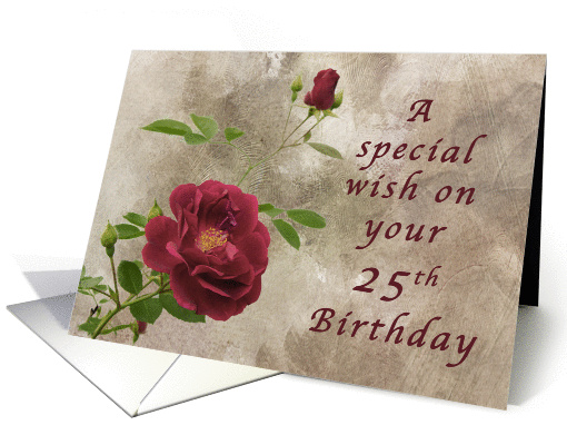 A beautiful red rose with a stucco textured wall in the background for this age specific birthday wish.