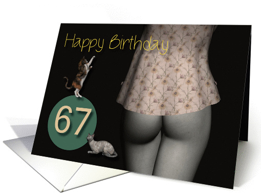 67th Birthday Sexy Girl with Small Colored Shirt and Cats