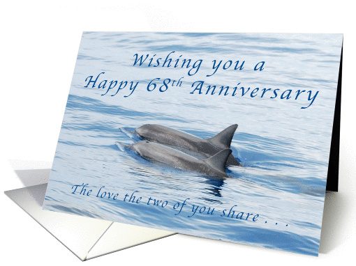 A pair of spinner dolphins swimming side by side make a beautiful image of a couple who have grow close with a bond of love holding them together. A perfect 68th Anniversary card for a special couple.