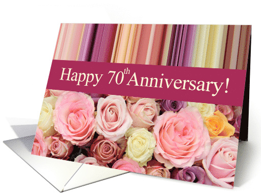 70th Wedding Anniversary Pastel Roses and Stripes. Roses in various pastel colors and stripes in matching shades make an elegant and colorful Happy Anniversary card. Created from an original Studio Porto Sabbia photo and available for anniversary years 1 to 75 and for some non-english languages.