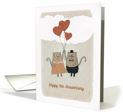 Happy 70th Wedding Anniversary, Two Cats, Heart Balloons