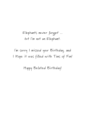 Cartoon Elephant Belated Happy Birthday