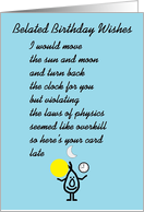 Wishing someone you care about a happy birthday is better late than never, especially when you have such a great selection of fun belated birthday cards to choose from, your friend or family member just may enjoy the belated birthday wishes more than they would if it had been on time.