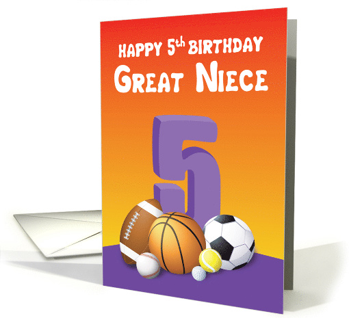As she turns five, you can put a big smile on her face once you give her this card that display a collection of sports balls and carries a fun inside message meant to greet her on her 5th birthday. Give this to your great niece when she celebrates.
