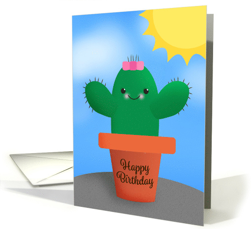 Happy Birthday Cute Girl Cactus in Pot Illustration