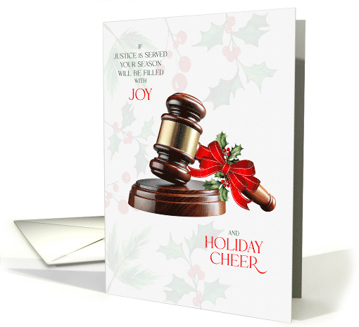 A legal system themed greeting for the season with wishes for holiday cheer and playful wording to pair with a courtroom theme, perfect for anyone in the judicial system.