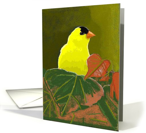 Beautiful Yellow Finch on Green Leaves, Blank Note Card