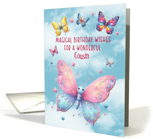 Cousin Birthday Glittery Effect Butterflies and Stars