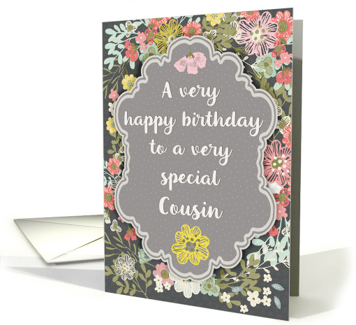 Cousin Birthday Pretty Pastel Flowers and Frame