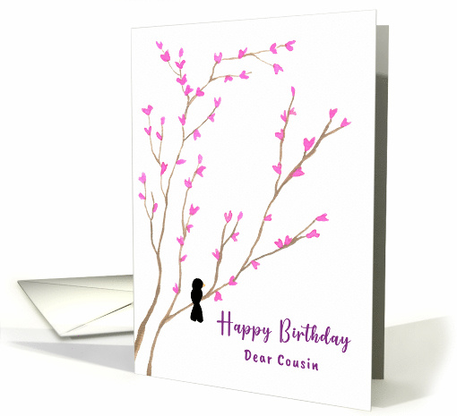 Happy Birthday Cousin Black Bird Tree Pink Blossoms Floral Watercolor