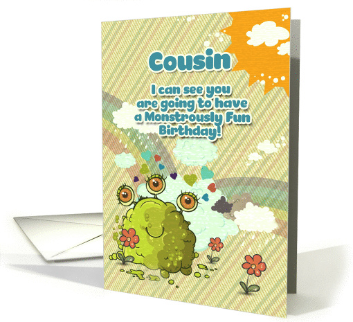 Happy Birthday Cousin Girly Cute 3 Eye Monster with Rainbow