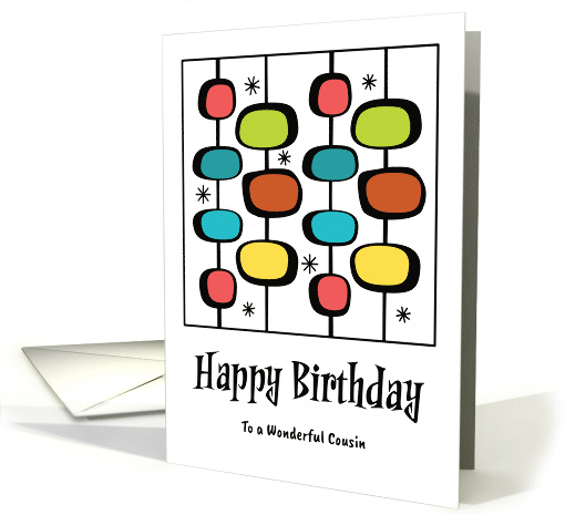 Happy Birthday Cousin Mid Century Modern Retro Vintage Ovals Stars