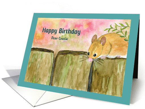 Happy Birthday Cousin Mouse Floral Garden Fence Botanical Watercolor