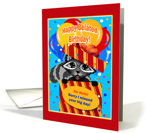 Raccoon in Gift Happy Belated Birthday