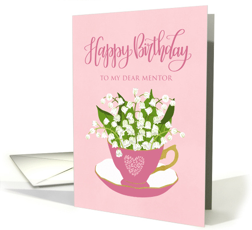 Mentor, Happy Birthday, Teacup, Lily of the Valley, Hand Lettering