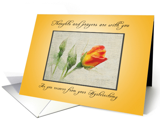 This beautiful slightly fading image of a yellow and orange rose on a burlap background make a very nice get well card for someone who had hysterectomy.