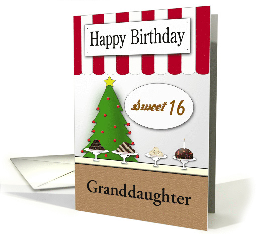 A Sweet 16 Christmas Birthday Card for your Granddaughter that features a Candy Store with candy and a Christmas Tree. Greeting Cardİ2015 Kreative Sentiments Cards by Sherry Harris