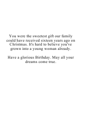 You were the sweetest gift our family could have received sixteen years ago on Christmas. It's hard to believe you've grown into a young woman already.