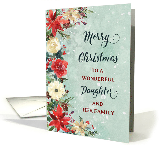 Snowy Rustic Floral Daughter and her Family Merry Christmas