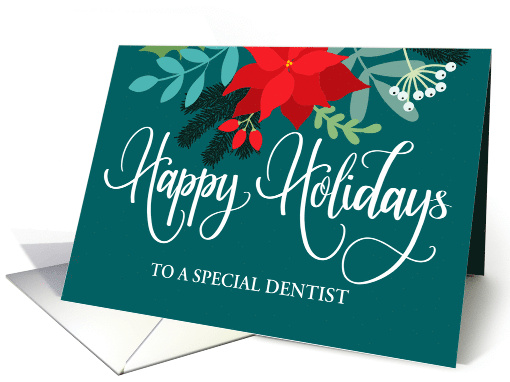 Customizable Happy Holidays to Dentist with Poinsettias