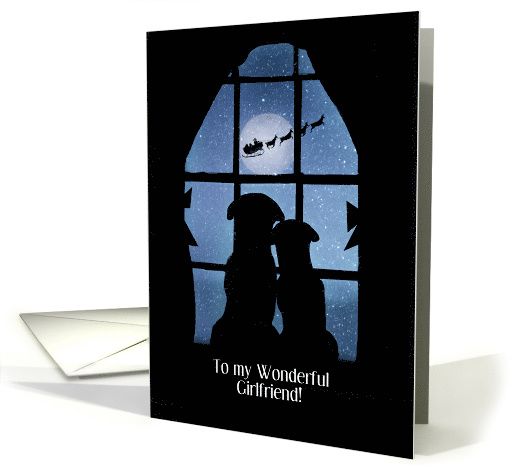 Girlfriend cute Christmas card that lets her know she makes you happy! A cute dog couple watching St. Nick on his route!