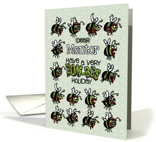"Season's Eatings!" Zombie bees are going to eat your brain! Gruesome fun for the Holidays with this undead swarm of zom-bees with a nice juicy brain and the text "Have a very Zom-bee Holiday". A unique Christmas card to send to your mentor.