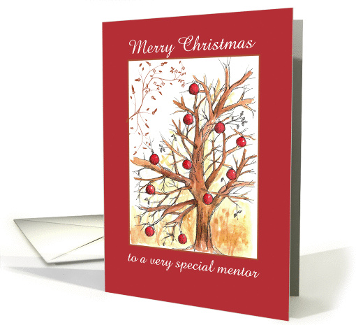 Merry Christmas Mentor Winter Tree Drawing Red Ornaments