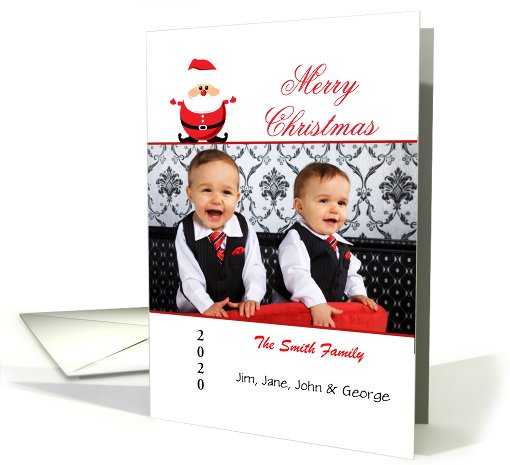 Customize this stylish Christmas photo card with Santa, by adding your own image to this design. Then just edit the date and name(s) to create your very own unique Christmas card. NOTE-there are no dimensional elements on this card. Vector Santa courtesy of Designious.