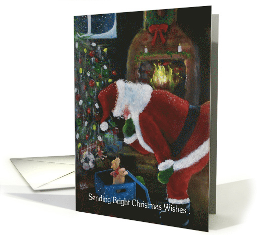 A delightful Christmas greeting, with a puppy in a box, Santa says " not a sound". The perfect card for anyone on your list.