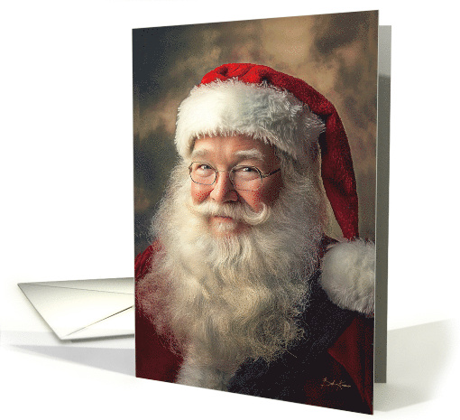 A heartwarming portrait of Santa Claus, his eyes gleaming with kindness, his iconic white beard flowing gently. Wearing his traditional red suit and hat, Santa captures the true spirit of Christmas joy and giving. Set against a soft, snowy background, this image invokes feelings of nostalgia and warmth.