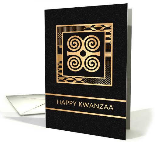 Embrace the spirit of Kwanzaa with this striking card featuring the Dwennimmen Adinkra symbol, powerful imagery representing the ram's horns. This emblem beautifully illustrates the importance of humility alongside strength – a concept central to many of Kwanzaa's guiding principles. The sophisticated black and faux gold design offers a modern yet respectful nod to African traditions, making it a meaningful way to convey your Kwanzaa wishes for inner fortitude and peaceful reflection.