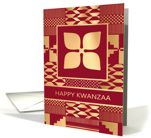 Celebrate the Kwanzaa principle of Umoja (Unity) with this striking card featuring the Nsirewa Adinkra symbol against a rich, red and faux gold Kente cloth background. The Nsirewa motif, which represents wealth and abundance, is beautifully framed by the vibrant Kente pattern, which symbolizes royalty and cultural significance. This card is a beautiful and thoughtful way to share greetings for a peaceful and prosperous Kwanzaa season.