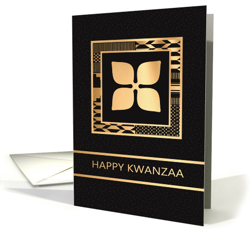 Celebrate the Kwanzaa principle of Umoja (Unity) with this elegant card featuring the Nsirewa Adinkra symbol. Translating to "cowrie shells," this ancient motif represents wealth, abundance, and security. The stunning black and faux gold design is a modern take on a timeless symbol, perfect for sharing the spirit of Kwanzaa and its core values with family and friends.