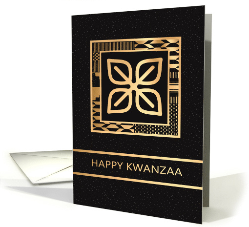 The enduring spirit of Kwanzaa is captured in this elegant card, featuring the Nsirewa Adinkra symbol. The motif, which represents wealth and abundance, is showcased in a delicate faux gold outline against a sleek black background. This design, inspired by the enduring values of unity and purpose, is a sophisticated and heartfelt way to share your greetings for a peaceful and prosperous Kwanzaa season.