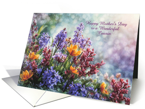 Cousin Happy Mothers Day with Pretty Spring Flowers Custom Cover Text