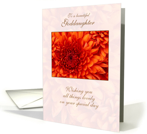 Give your Goddaughter a lovely Mother's Day wish with this brilliant, fire-orange dahlia card. Original Design by Sue Nollmeyer©2014. 21214