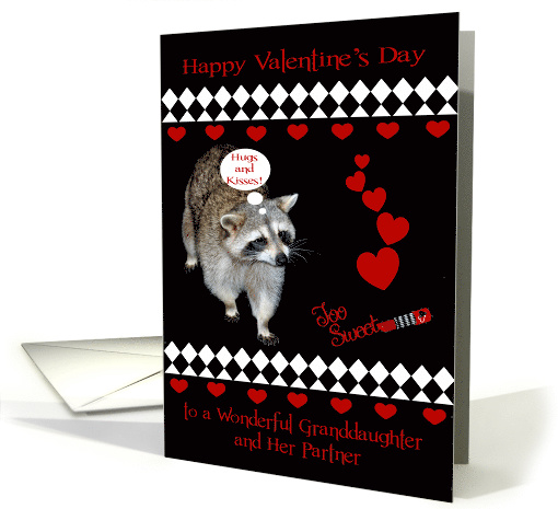 Valentine's Day to Granddaughter and Partner with a Raccoon and Hearts