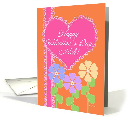 Happy Valentine's Day Nick! Name Specific, Pink Heart, Flowers