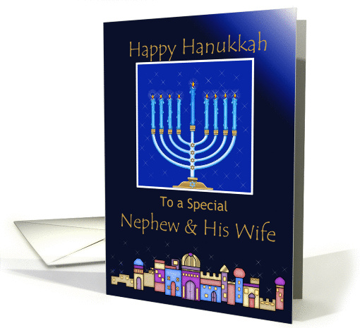 Happy Hanukkah Nephew & His Wife, Menorah & City