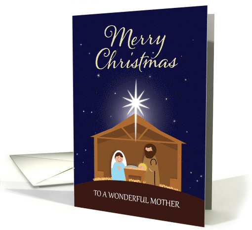 Nestled under the Christmas star, this illustrated nativity scene is a sweet way to wish your mother a Merry Christmas.