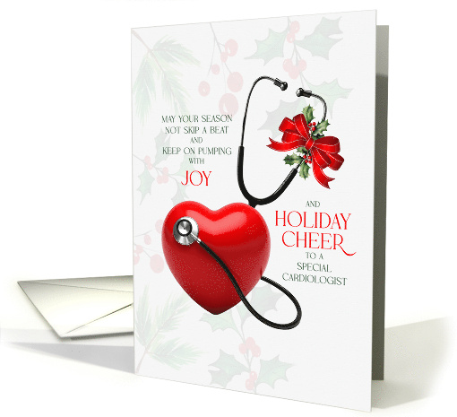 Wish your cardiologist a season that doesn't skip a beat and keeps on pumping with joy and holiday cheer when you choose this heart and stethoscope themed greeting.