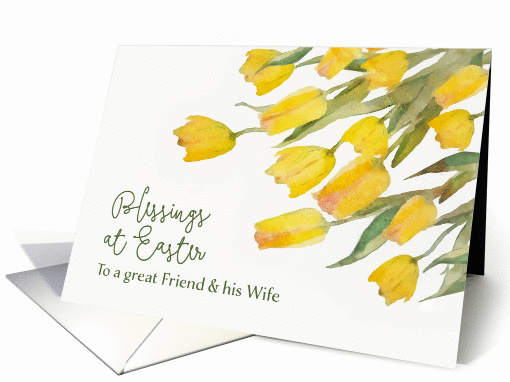 Blessings at Easter, Friend and his Wife, Tulips, Watercolor Painting