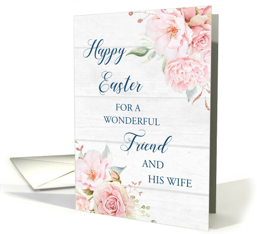 Pink Floral Rustic Wood Friend and his Wife Happy Easter