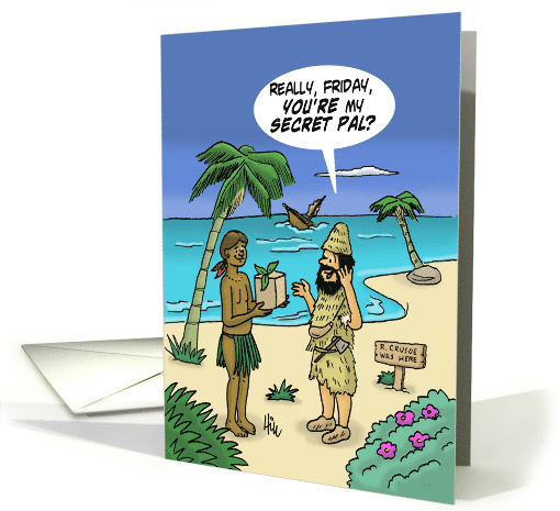 Secret Pal Day Card With Robinson Crusoe And Friday On Island