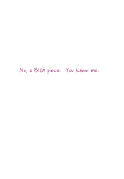 No, a BIG piece. You know me.