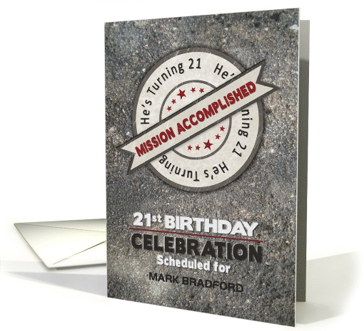 21st Birthday Party Invitation For Him, Mission Accomplished, Name