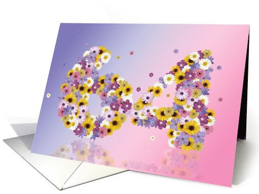 64th birthday party invitation. A fun birthday party invitation with happy numbers made from daisy flowers. An unusal and pretty party invitation.