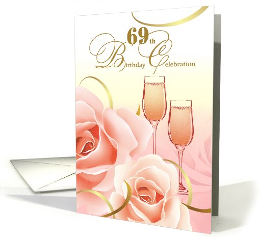 69th Birthday Party Invitation. Wine and Roses