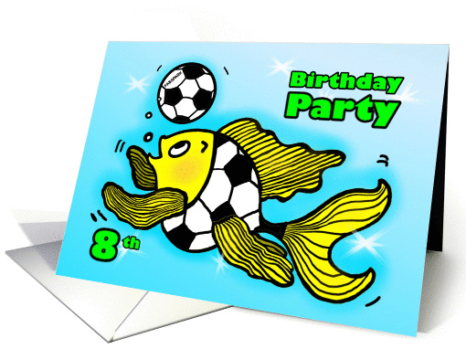 8th Birthday Party Invitation Soccer Football funny Fish cartoon eight