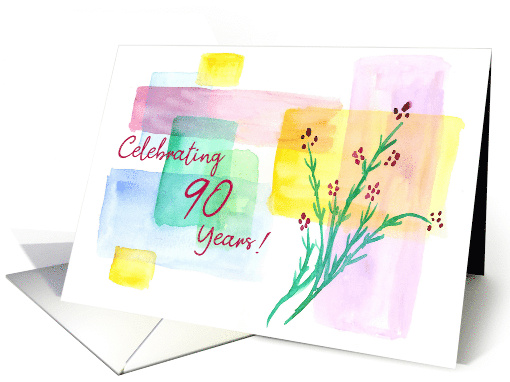 Gather friends and family together to celebrate a very important 90th birthday of someone special. This card features an elegant botanical design with pastel shapes illustrated with watercolor.
